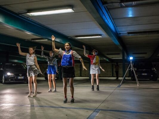 La performance, che vede in scena Sissj Bassani, Camilla Neri, Martina Piazzi e Francesca Pizzagalli, si basa su un accurato lavoro mimetico che adatta sequenze coreografiche originali dell’epoca alle composizioni sonore di Alberto Ricca/Bienoise. Il risultato è un dispositivo scenico che opera a 160 bpm, una sorta di centrifuga estetica e sonora che rievoca l’immaginario del tuning e dei volumi estremi, stimolando una risposta cinetica immediata attraverso il rigore del movimento e la sovraeccitazione musicale.